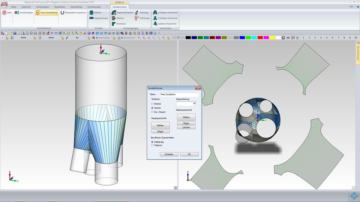 Durch das freie und direkte Konstruieren erstellen Sie in kürzester Zeit alle nur denkbaren Sonderformen für den Behälter- und Rohrleitungsbau, den Apparatebau und für die Heizungs-und Klimatechnik