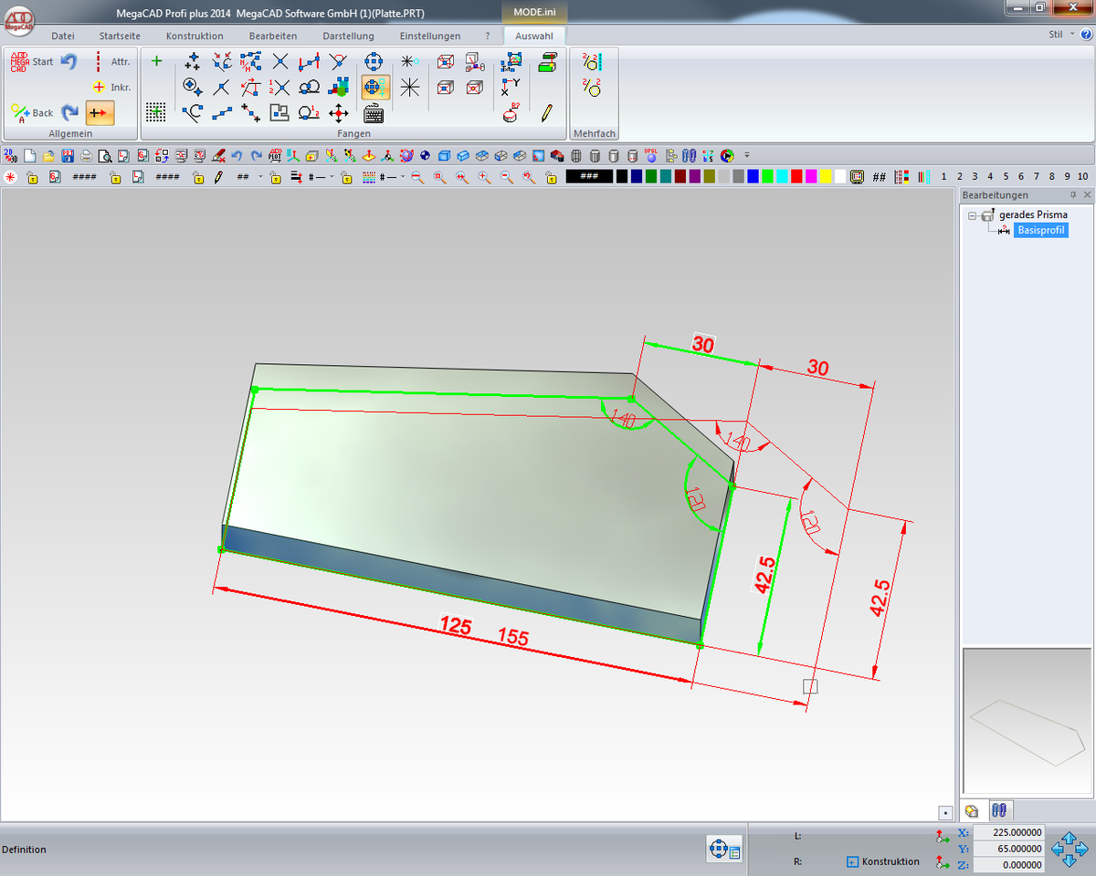 - Erzeugen von skizzenbasierenden Körpern (z. B. Austragung, gerades Prisma, Rotationskörper, Sweepkörper)