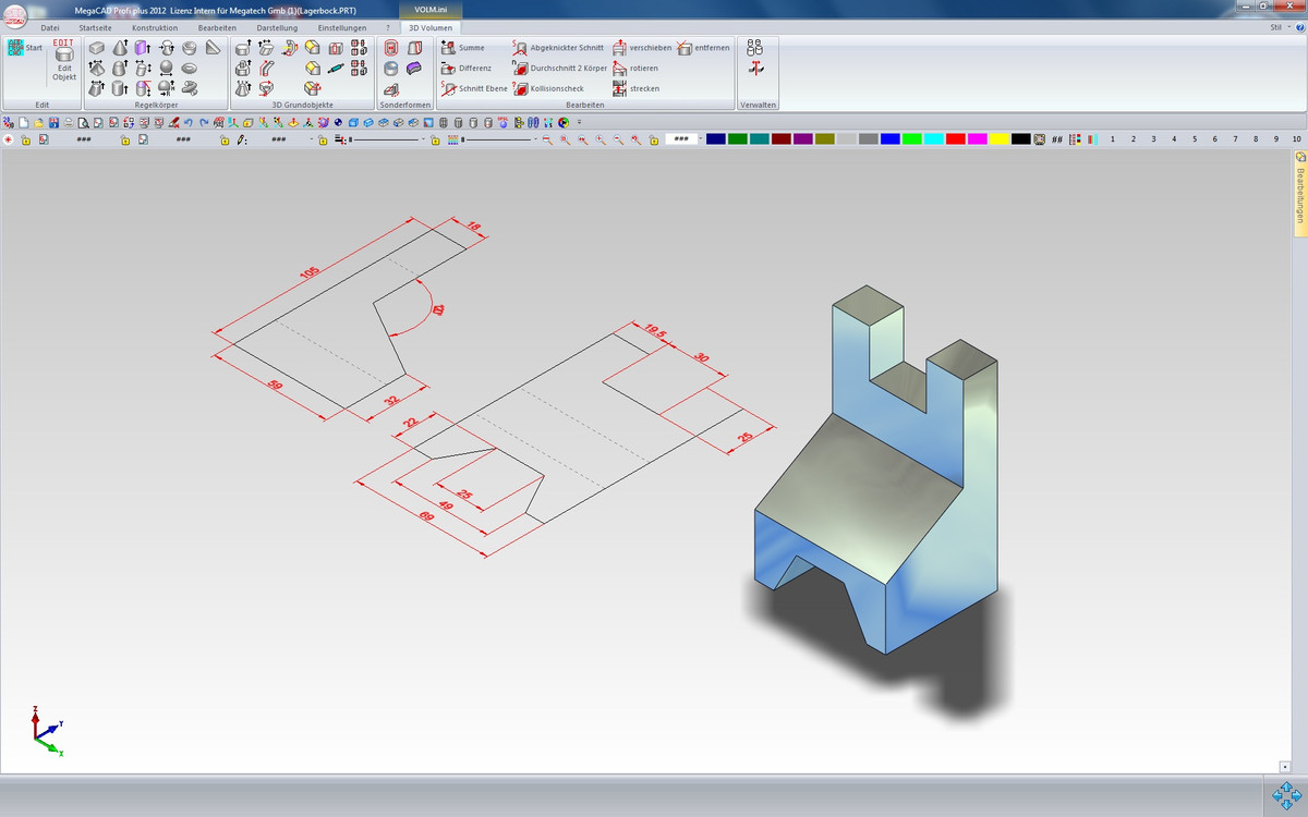 MegaCAD 3D ist die wegweisende Lösung für Konstrukteure und mittelständische Unternehmen, die ein vollwertiges 2D-Programm für Werkstattzeichnungen, verbunden mit einer innovativen 3D-Technologie, benötigen. Die Konstruktionssoftware überzeugt durch ihre besondere Leistungsstärke, einfache Bedienung und ein herausragendes Preis-Leistungs-Verhältnis.