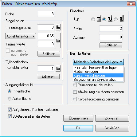 - Radien einfügen; Biegezonen als Zylinder abwickeln