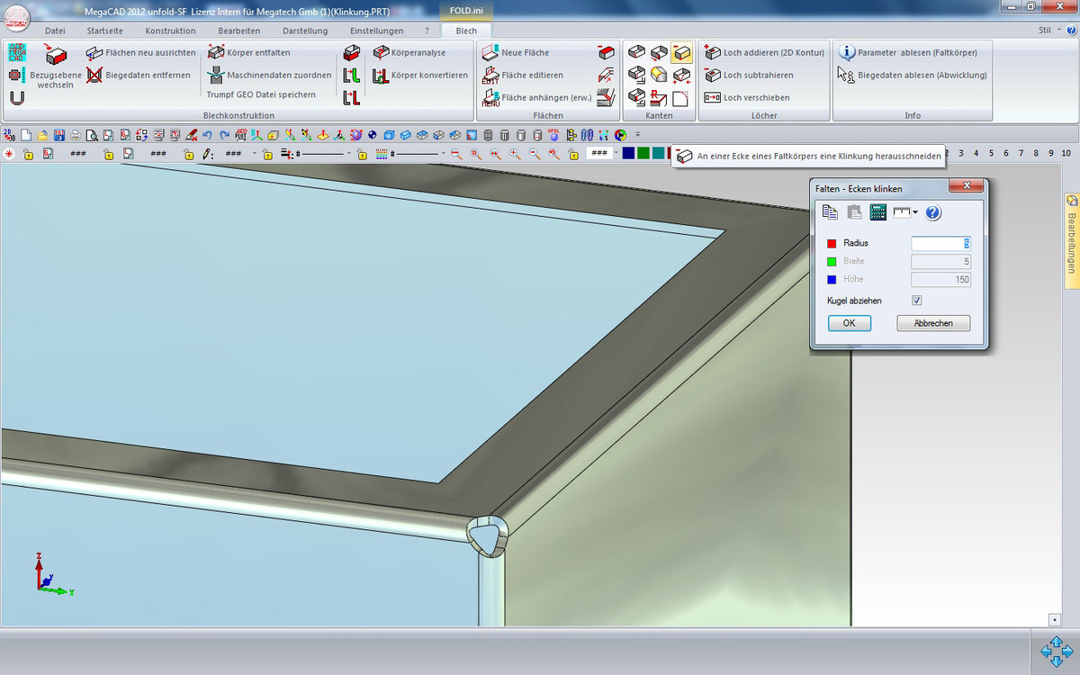 Hier finden Sie eine kleine Auswahl aller Funktionen, die das tägliche Konstruieren mit MegaCAD Blech noch besser machen.