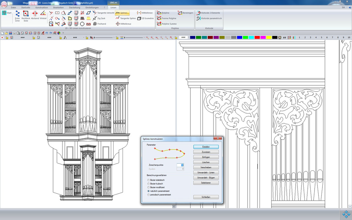 Alle wichtigen Grundfunktionen der 2D-Version sind bereits enthalten. Über die DXF-/DWG-Schnittstelle werden Zeichnungen mit anderen CAD-Systemen ausgetauscht. Das Upgrade auf größere MegaCAD Versionen ist jederzeit möglich.