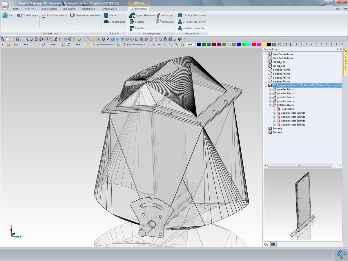 Unter der Überschrift „Mehr Effizienz bei der Blechbearbeitung“ wird am Messestand außerdem MegaCAD USF Blechpaket vorgestellt. Das Programm gewährleistet einen schnellen und zuverlässigen Herstellungsprozess: Vom Design des Blechkörpers über die automatische Abwicklung der Bleche bis hin zur Fertigungszeichnung. Leistungsfähige Funktionen und durchdachte Konstruktionswerkzeuge sind hier unter einer intuitiv bedienbaren Oberfläche vereint. Das freie und direkte Konstruieren ermöglicht die zügige Erstellung aller nur denkbaren Sonderformen für den Behälter- und Rohrleitungsbau, den chemischen Apparatebau und für die Heizungs- und Klimatechnik. Produktionstechnische Erfordernisse werden schon während der Konstruktion erkannt und selbstständig Lösungen dafür angeboten.