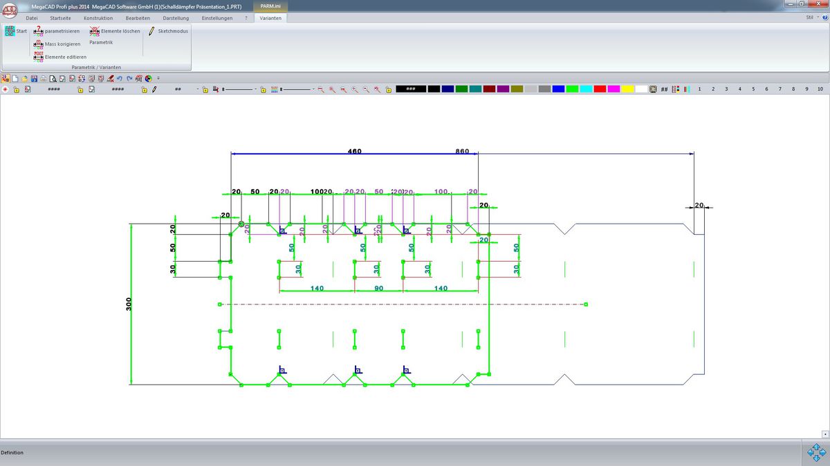 Verknüpfung von 2D-Parametrik und 3D-Variablen. Eine 2D-Zeichnung kann ganz oder nur teilweise parametrisiert werden.