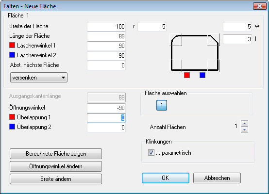 Die Biegezonen werden zur Verbesserung der Übersichtlichkeit nicht dargestellt. Bei der Abwicklung werden die Rundungsbereiche dennoch korrekt berücksichtigt.