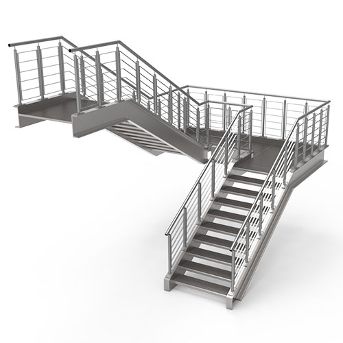 Mit unserem neuen Treppenmodul erstellen Sie im Handumdrehen geradläufige und 2-läufige Industrietreppen in L- und U-Form, mit Podest und Geländer, effizient über die Eingabemaske.
